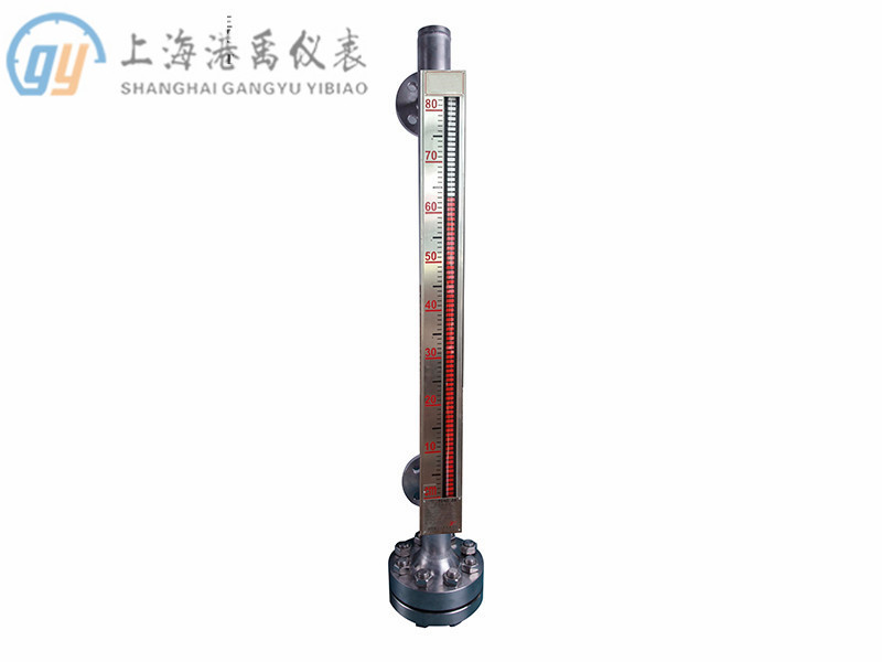 液位计根据浮力原理和磁性耦合作用研制而成。当容器中的液位升降时,液位计主导管中的浮子也随之升降,浮子内的****磁钢通过磁耦合传递到现场指示器,驱动红或白翻转180度,当液位上升时,翻柱有白色转为红色,当液位下降时,翻柱又红色转为白色,指示器的红、白界位处为容器内介质液位的实际高度,从而实现液位的指示。
